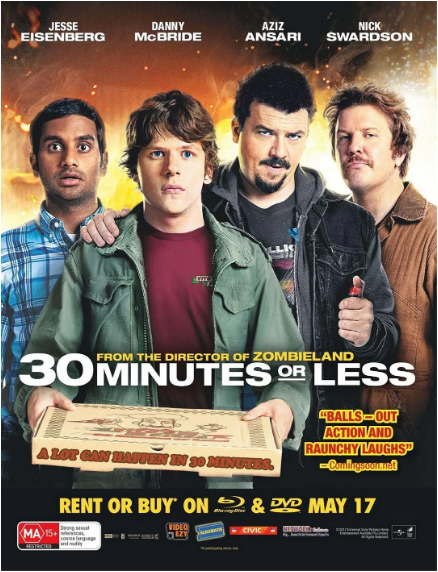 4GBD258557 (独家)" "惊魂半小时/30分钟倒计时(画中画,《僵尸之地》导演鲁本·弗雷斯彻执 导的新片,杰西·艾森伯格《社交网络》、丹尼·麦克布耐德、尼克·斯沃德森、阿兹·安萨里等主演 ,打造2011年度动作冒险喜剧) 30Minutes or Less " 英 DTS-H5.1/英 (口述影像)DD2.0/法 DD2.0/ 泰 DD5.1 英/英/法/西/葡/中繁(3区)/中简/中繁/韩/泰 保留全部花絮内容,附高清中 文字幕