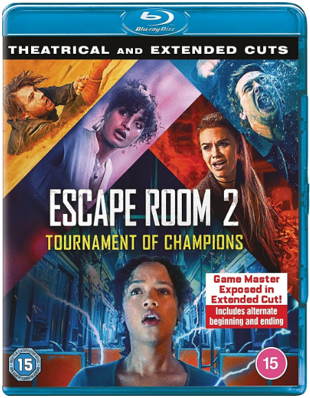 Escape Room: Tournament of Champions" 【独有原版及全中文导航双模菜单】独享索尼美A、英B、港A三版蓝光复合版本,荟萃中法泰官方素材精华,优选港A区更全音轨字幕框架,完整还原原版无缝双Title功能一碟尽览原装剧场版及延展加长版双版正片,特别幸存DTS-HD 5.1高清无损原音,集成独家国内数字版源码公映国配,官方中英法西韩泰印尼字幕,保留原版完整幕后花絮内容并附全程官方中文字幕 英DTSHD5.1 法5.1-448(限剧场版) 西5.1-640 国2.0-192(限剧场版) 泰5.1-640 英 法 西 中简 中繁 韩 泰 印尼 "※炫目但致命 5:50※冠军游戏 5:10※加大难度 3:55"继首集全球轰动2年后,游戏再度启动,逃脱难度再升级,幸存者大反击洗版:加独家港A,集齐中法泰官方素材,加独家公映国配,升级花絮为官方汉化"