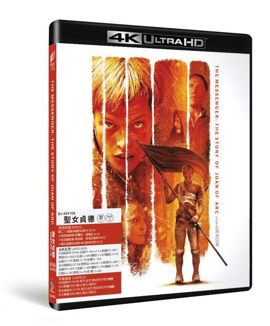 (UHD+BD25 4K修复无缝双T版)The Messenger: The Story of Joan of Arc" 【独有原版及全中文导航双模菜单】独享2025·12新发索尼美版4K修复版UHD+2BD版(取自《吕克·贝松套装》合集),荟萃中法日泰悉数官方素材精华,完整还原原版无缝双Title功能一碟尽览R分级版及未分级版杜比视界及HDR10格式4K修复双版正片,双版均附特别神圣杜比全景声7.1.4沉浸式/DTS-HD 5.1/DTS-HD 2.0三高清无损原音,集成6区5.1/独家央视共双国配及DVD版独立配乐5.1音轨,官方中英法西日韩泰印尼字幕,碟二保留原版蓝光花絮碟完整幕后花絮内容并附独家全程中文字幕 "R分级版(02:28:06):英语DD-Atmos7.1.4 英语DTS-HD5.1 英语DTS-HD2.0 法语5.1-448 国语5.1-384 国语2.0-192 日语2.0-192 泰语2.0-192 配乐5.1-384未分级版(02:37:58):英语DD-Atmos7.1.4 英语DTS-HD5.1 英语DTS-HD2.0 法语5.1-448 国语5.1-384 国语2.0-192 日语2.0-192 泰语2.0-192 配 乐5.1-384" "R分级版(02:28:06):英 法 西 中简 中繁 日 韩 泰(印尼)未分级版(02:37:58):英 法 西 中简 中繁 日 韩 泰(印尼)" "碟二:※追随贞德的足迹 01:22:20※对话剪辑师:西尔维·朗德拉 16:34※对话摄影师:蒂埃里·阿博加斯特 08:02※寻找真实的贞德:HBO首映特辑 23:52" "杜比视界HDR10"吕克·贝松执导,米拉·乔沃维奇化身传奇女战神,挥剑斩破英军铁蹄,约翰·马尔科维奇与达斯汀·霍夫曼见证悲剧宿命,豆瓣7.4分高分认证 "导演: 吕克·贝松编剧: 安德鲁·伯金 / 吕克·贝松主演: 米拉·乔沃维奇 / 达斯汀·霍夫曼 / 费·唐纳薇 / 约翰·马尔科维奇 / 文森特·卡塞尔 "