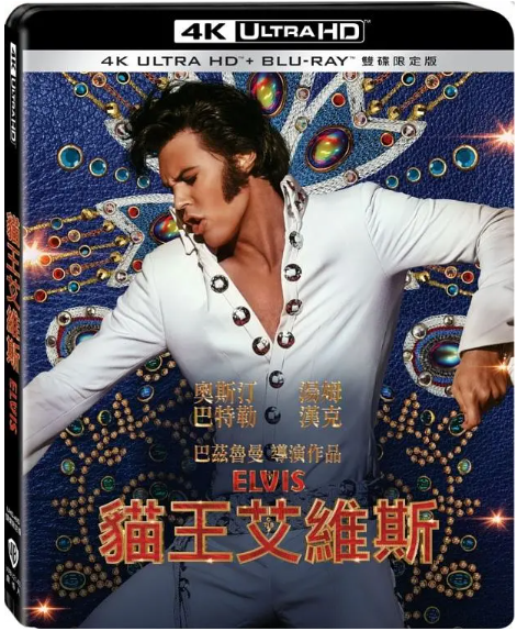 Elvis" 【独有原版及全中文导航双模菜单】独享华纳自带中文欧版4K UHD及华纳美A、得利台A区双版蓝光复合版本,荟萃中法日泰悉数官方素材精华,杜比视界及HDR10双格式视频,特别传奇杜比全景声7.1.4沉浸式高清无损原音,集成独家HBO台式国配/独家HBO粤配,官方中英法西日韩泰印尼字幕,集成蓝光版完整幕后花絮内容并附全程官方中文字幕 英DD-Atmos 7.1.4 法语5.1-448 西语5.1-448 国语2.0-192 粤语2.0-192 日语5.1-448 泰语2.0-192 英 法 西 中简 中繁 中繁 日 韩 泰(印尼) "※制作特辑 22:23(BD)※摇滚忠诚:《猫王》幕后的音乐与艺术家 07:33(BD)※适合王者:《猫王》的风格 08:02(BD)※澳大利亚万岁:为《猫王》重建标志性场景 07:26(BD)※音乐MV 48:35(BD)" "杜比视界HDR10"《红磨坊》《了不起的盖茨比》殿堂级导演巴兹·鲁赫曼掌舵,《好莱坞往事》新一代男神奥斯汀·巴特勒,联同奥斯卡影帝汤姆·汉克斯,将已故摇滚传奇天王“猫王”埃尔维斯·普雷斯利的一生,震撼而感动地重现大银幕 "导演: 巴兹·鲁赫曼编剧: 巴兹·鲁赫曼 / 山姆·布罗梅尔主演: 奥斯汀·巴特勒 / 汤姆·汉克斯 "