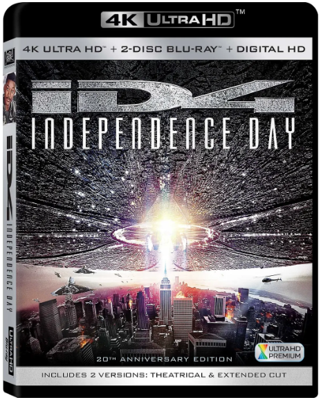 Day" 【独有原版及全中文导航双模菜单】独享福克斯美港A区20周年纪念双碟豪华版蓝光、独家4K UHD版复合版本,荟萃中法日泰悉数官方素材精华,优选港版携带国语及多音轨字幕菜单框架,完整还原原版无缝双Title架构一碟尽览剧场版及特别加长版双版正片,特别反击DTS:X 7.1.4沉浸式高清无损原音(4K版独有),附官方自带/内参/独家东影三国配及明珠台粤配,官方中英法西日韩泰印尼字幕,附汉化评论字幕及琐事字幕,保留原版碟二完整幕后花絮内容并附独家全程(部分官方,近一小时内容官方未携带中文字幕独家汉化)中文字幕,ROM超值加赠双版本OST数据包剧场版:英语DTS:X 7.1.4 法语DTS5.1-768K 西语5.1-448K 国语2.0-224K 国语5.1-640K 国语2.0-192K 粤语2.0-192K 日语DTS5.1-768K 泰语5.1-448K 英评1.0-192K 英评2.0-224K特别加长版:英语DTS:X 7.1.4 法语DTS5.1-768K 西语5.1-448K 国语2.0-224K 国语5.1-640K 国语2.0-192K 日语DTS5.1-768K 泰语5.1-448K 英评1.0-192K 英评2.0-224K" "剧场版:英 法 西 中简 中繁 中繁 日 韩 泰 中简评 中简评 中简TT(印尼 萄 英评 日评 英TT)特别加长版:英 法 西 中简 中繁 中繁 日 韩 泰 中繁评 中繁评(印尼 萄 英评 日评)"碟一:※独立日:卷土重来-预告片碟二:※独立日:传奇奔腾向前 30:40※原始上映版结局 04:16※搞笑镜头 02:05※创建真实29:19※侵袭 21:57※制作特辑 28:29※战斗回顾 09:04(自译中字)※监测地球广播 51:08(自译中字)※画廊(无外挂)※预告片 05:09※剧场版预告片 02:30※电视广告 03:57※ROM:双版本电影原声OST 豆瓣10万人评分高达8.0口口相传20年经典终随今年即将上映续集迎来蓝光升级纪念版本 洗版:换4K版DTS:X,加东影上译国配组成三国配"导演: 罗兰·艾默里奇编剧: 罗兰·艾默里奇 / 迪安·德夫林主演: 威尔·史密斯 / 比尔·普尔曼 "